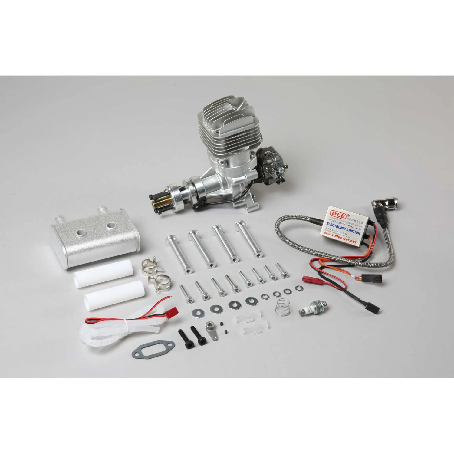 The DLE-35RA features a rear exhaust for the perfect tuned pipe setup. It also includes a newly designed piston with re-engineered skirt for less piston weight – resulting in such advantages as awesome throttle response, more power and longer engine life. Producing 400 more rpm than the DLE30, the DLE-35RA comes with engine standoffs, electronic ignition, spark plug and muffler.