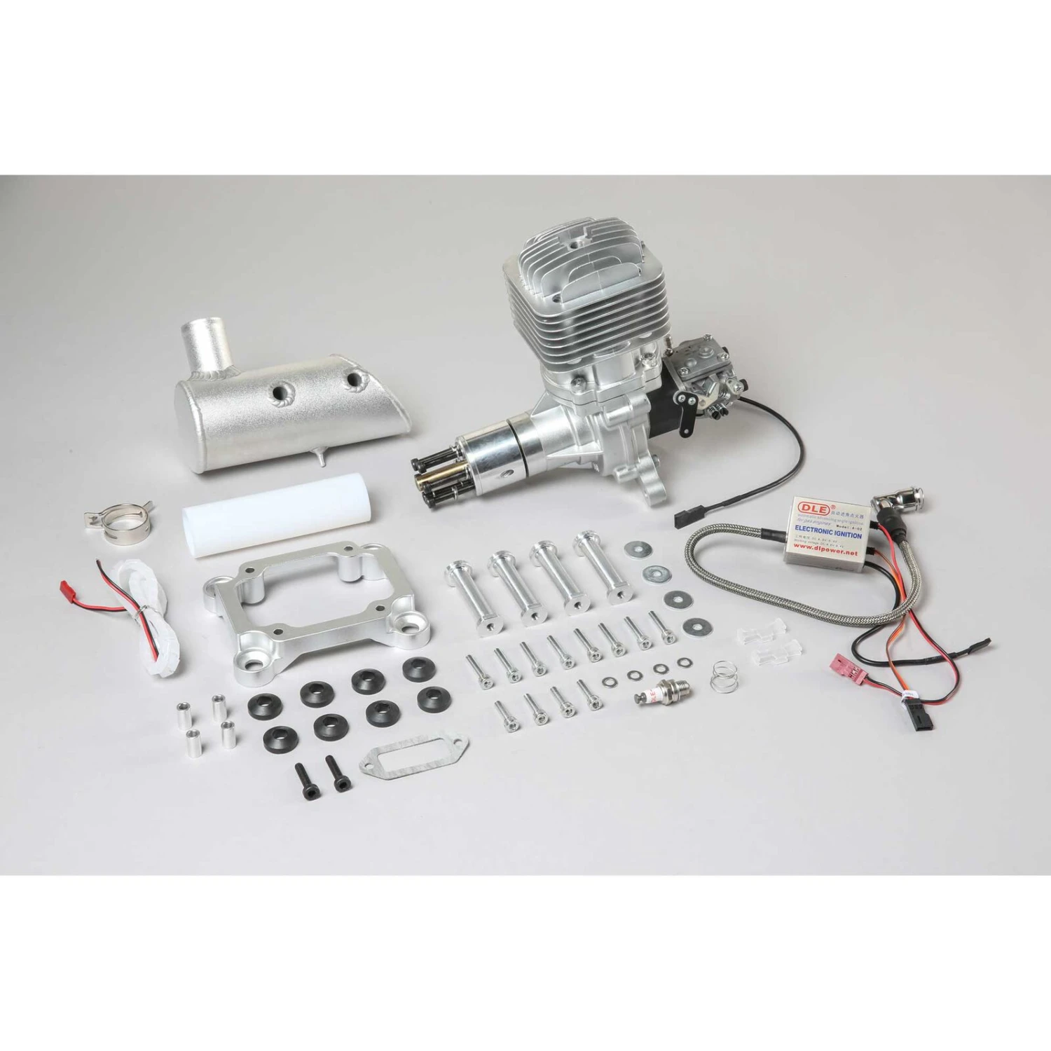 Giant-scale enthusiasts will love the power, performance and value of the DLE-85cc! The engineers at DLE have thought of everything. Vibration — a real concern for many single cylinder engines — is checked by a vibration-dampening engine mount. Plus, an exhaust extension lets the engine fit in more planes without cowl modifications. This extension will flex or pop off during a hard landing, helping to protect the engine.