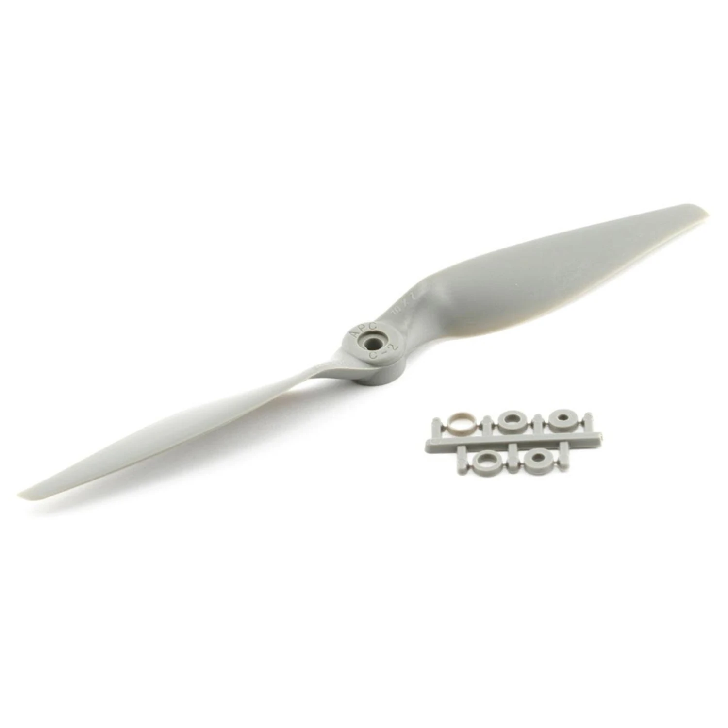 This is the APC 10×7 Thin Electric Propeller. APC propellers are manufactured using a pultrusion process which allows for a higher fiber (60%) to resin (nylon binder) density. This provides substantially higher strength and stiffness than glass-filled nylon. The additional stiffness is beneficial to control vibration resonance response. The higher strength allows the use of thinner cross-sections, beneficial to weight and aerodynamic efficiency.