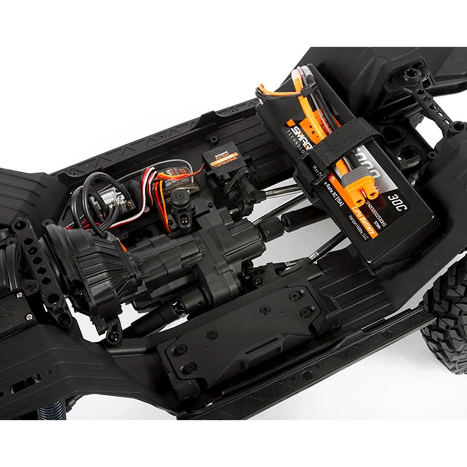 - Chassis tray accepts full-size, standard LiPo or NiMH batteries, with space on the side rails for running small pack sizes
