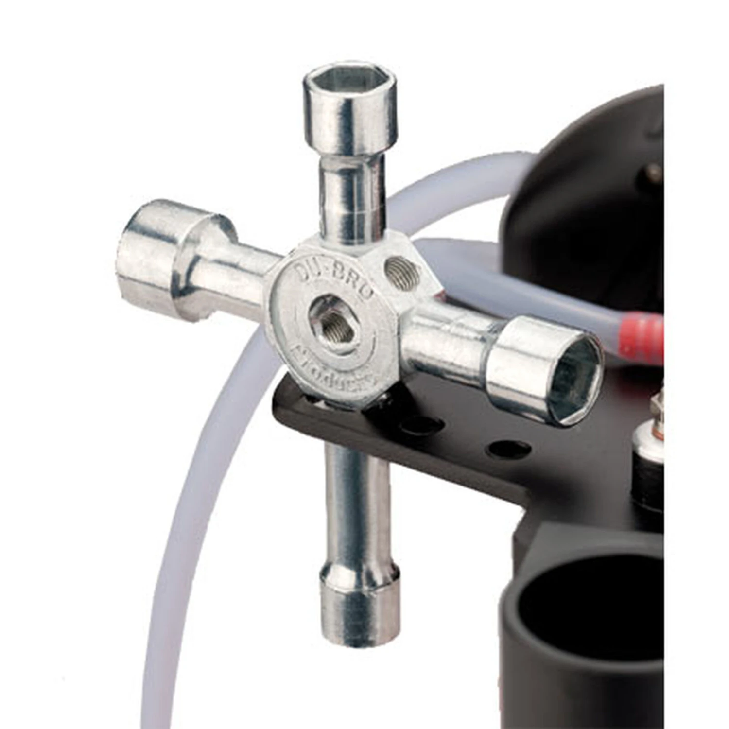 When you fuel your aircraft with the Fillin’ Station from DU-BRO, you will have everything you need right on board your bottle. The Fillin’ Station comes complete with the DU-BRO Kwik-Fill Hand Crank Fuel Pump, Kwik Fill Fuel Cap Fitting, Leak Proof Cap, Silicone Tubing, Built-In Tool Holders, Anodized Glo Plug Holders, Kwik Start Glo-Plug Ignitor with charger, Glo Caddy, and the DU-BRO 4-Way Wrench. You can also buy the unloaded version which includes everything except the Kwik Start Glo-Plug Ignitor, and the 4-Way Wrench (Cat. No 908).The Fillin’ Station is a must have for aircraft modelers.