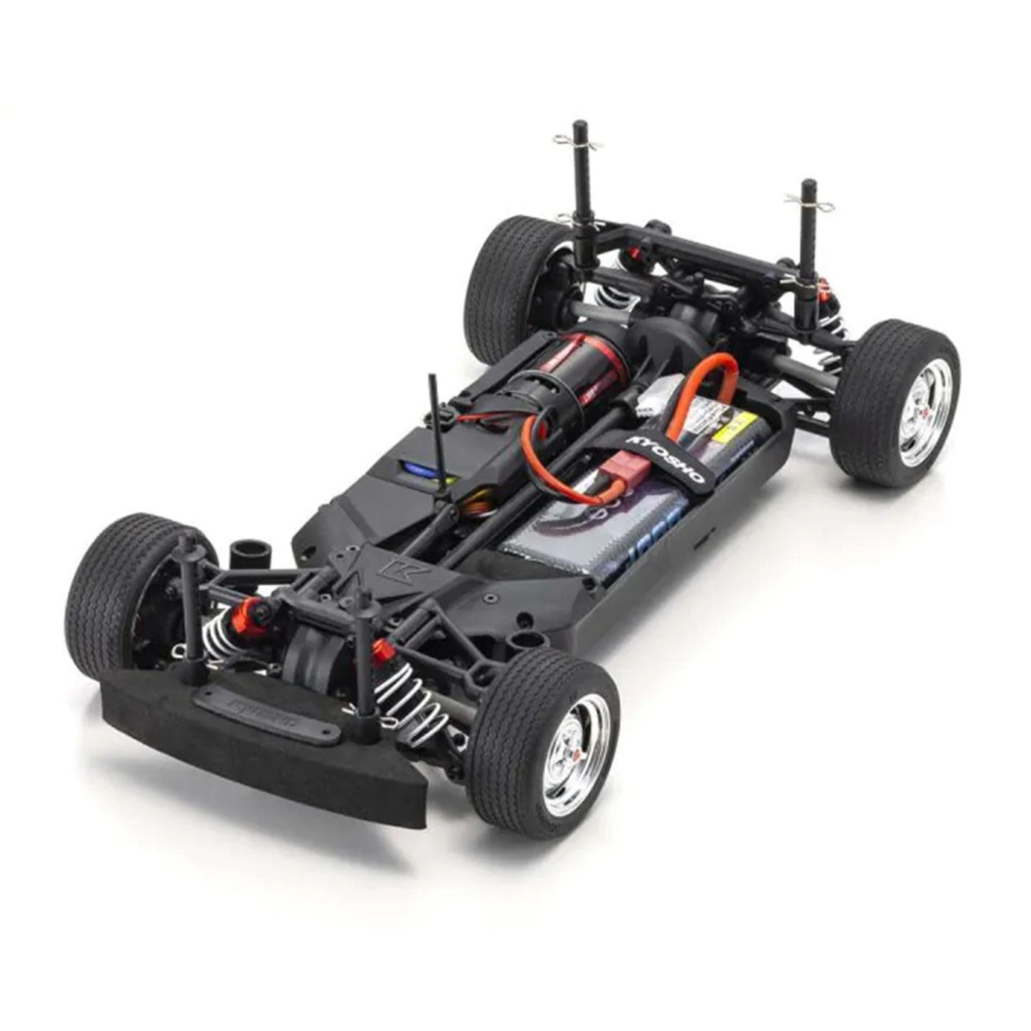 This is the Kyosho EP Fazer Mk2 FZ02L 1957 Chevy Bel Air Coupe ReadySet. Using the iconic 1957 Chevy Bel Air Coupe as an inspiration, Kyosho has expertly recreated this classic car with incredible detail. The scale polycarbonate body incorporates the unmistakable Bel Air grille, lights, window trim and who could forget the large tail fins! The combination of this beautifully reproduced body with the FAZER series chassis can’t be beaten. Kyosho has taken its standard touring car chassis and given it a full model makeover that has evolved performance. A simplified design with fewer parts simplifies maintenance and reduces weight, while core strength and rigidity has been increased through updated materials and ribbing/stiffeners on front and rear. In addition, the symmetrical chassis design offers excellent front-rear suspension balance with responsive control, regardless of power source.