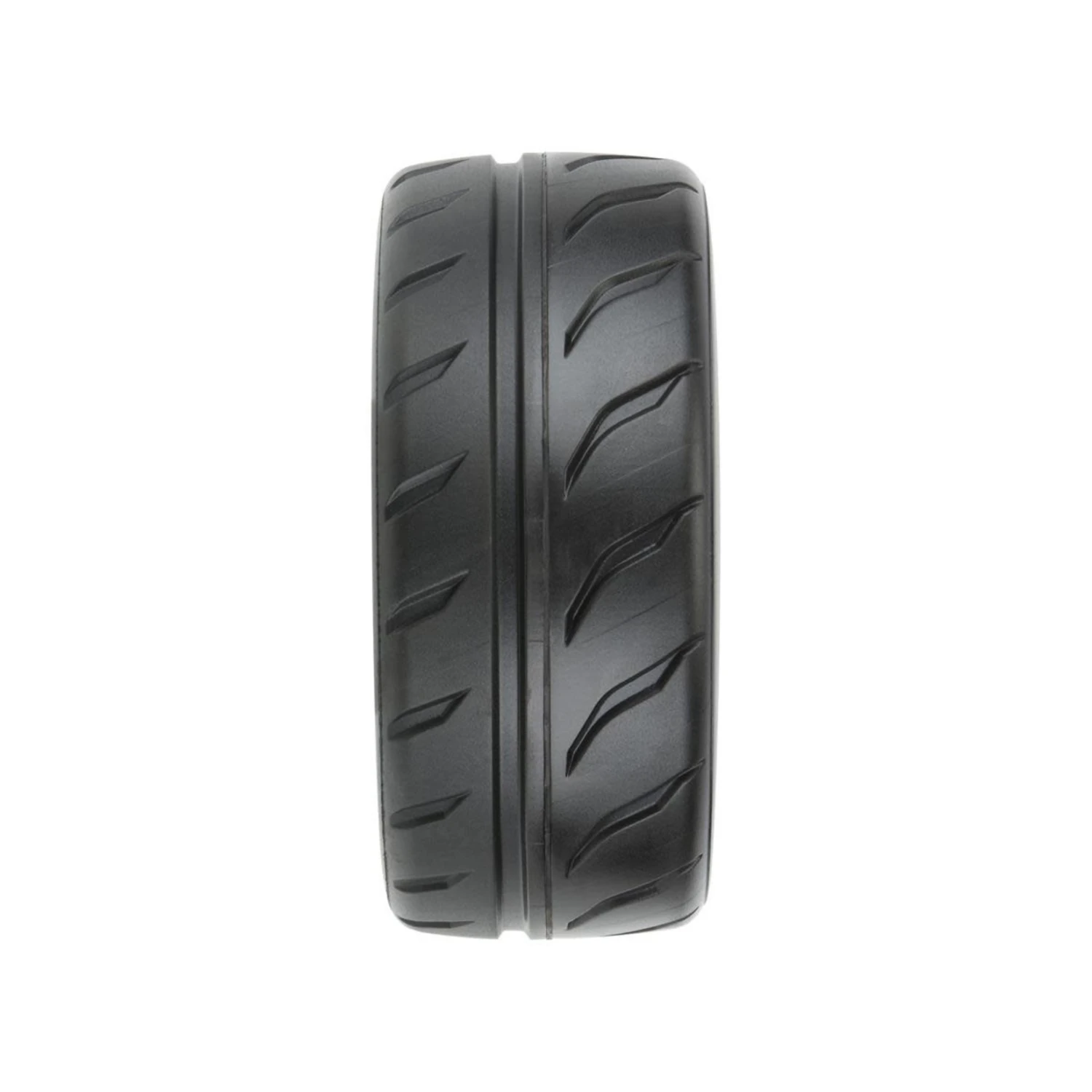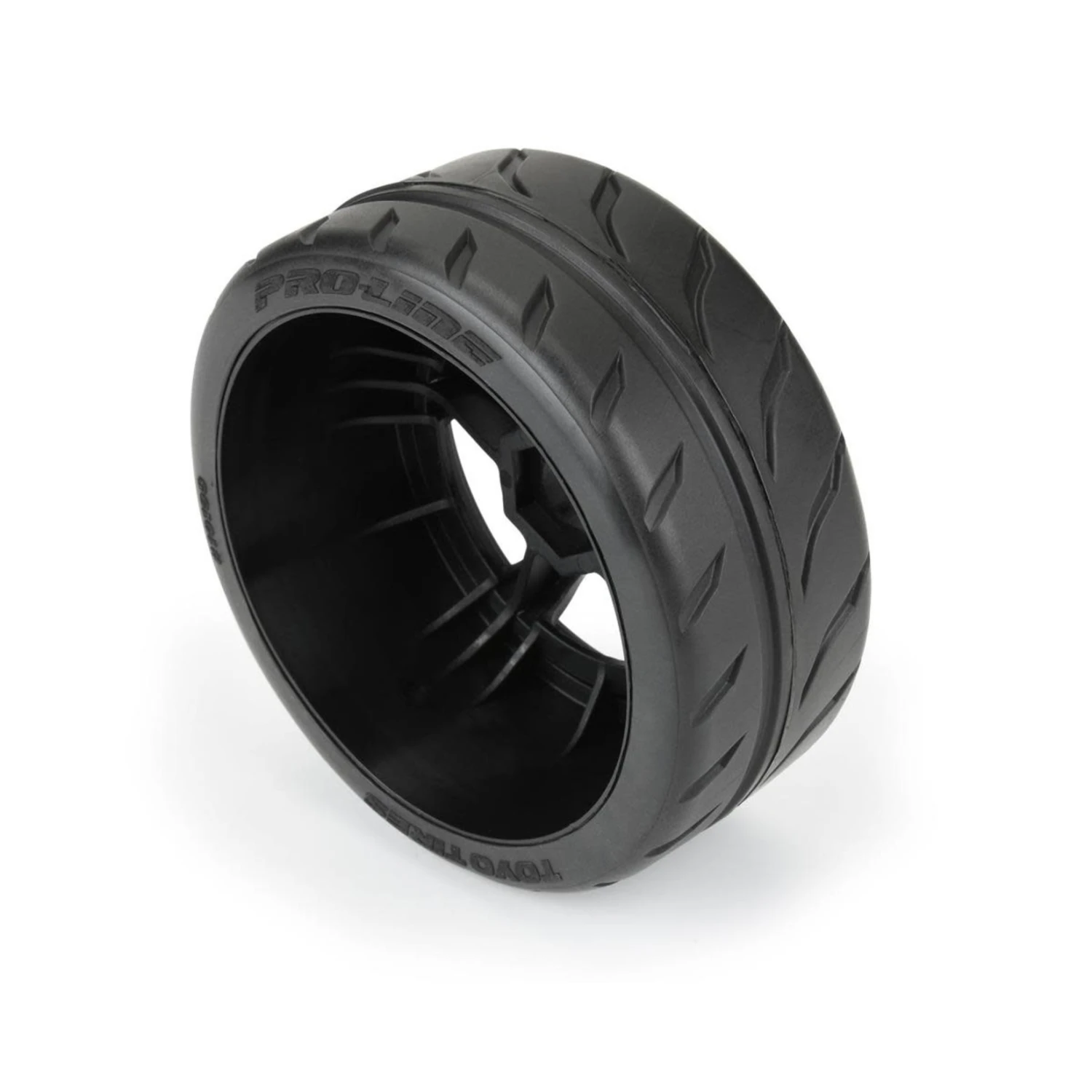 Pro-Line Toyo Proxes R888R 42/100 2.9 Belted 5-Spoke Pre-mounted Tires were developed for the popular ARRMA 1/7 Street Bash line of vehicles. All the details from the full-size high-performance competition tire have been recreated to give your Infraction or Limitless the ultimate in scale looks, street performance, and long-lasting wear. The Proxes R888R is known for extreme grip, cornering, and braking stability in the full-scale world, and it’s no different in the RC world as these tires will transform the handling of your car or truck. The large tread blocks on the outside tread maximize lateral grip while the wide center rib improves directional stability for all-out speed runs.