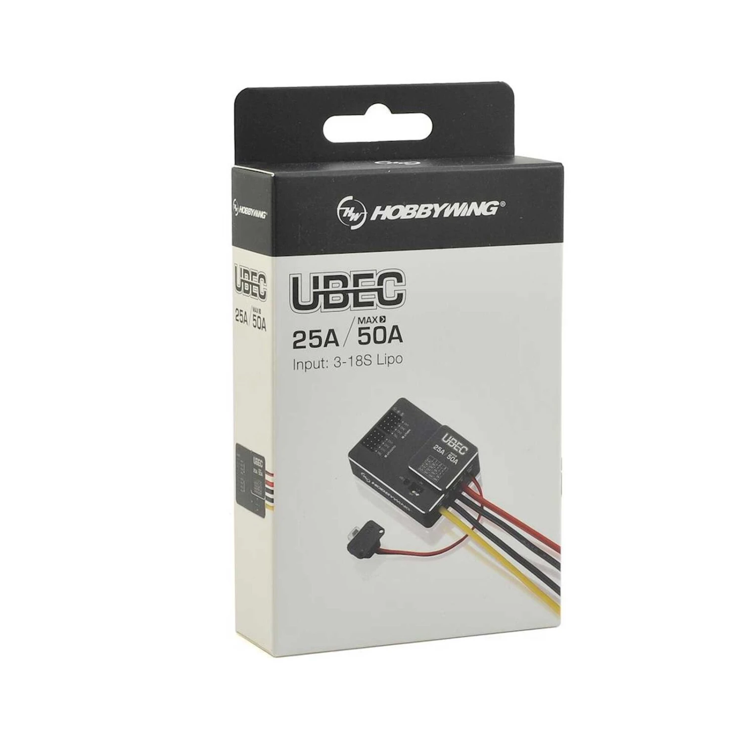 The UBEC is an external switching-mode DC-DC regulator chip. It draws the DC voltage from a 3-18S LiPo battery and drops the voltage to a level suitable for receivers and other electronic devices and keeps providing the stable current output of up to 25Amp. The UBEC has such a powerful output capability, so it is particularly applicable for the large helicopters or fixed-wing aircraft which use several servos.