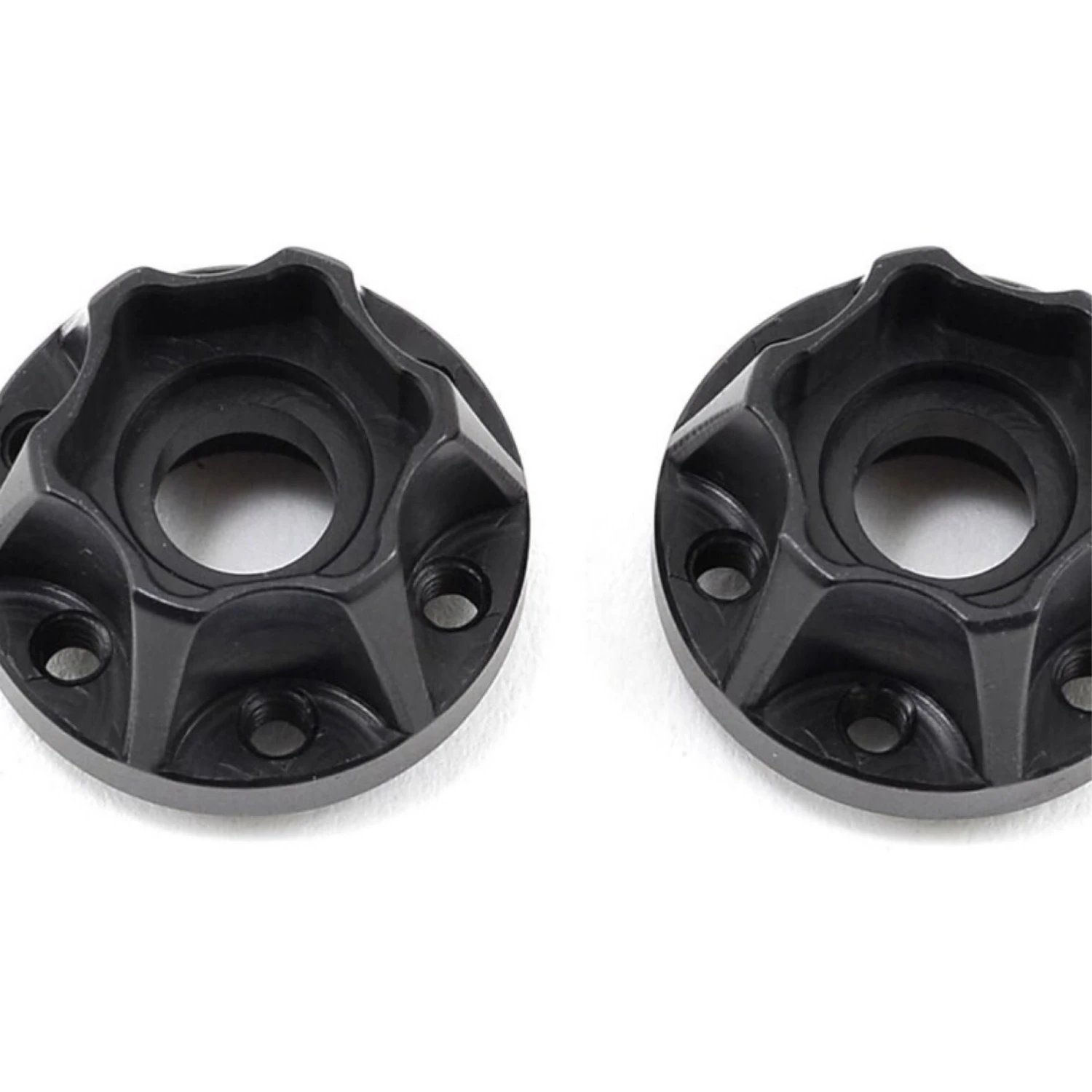 This is a pair of optional Vanquish Products Aluminum SLW 475 Hex Hubs. Personalize your rig with these super slick black anodized aluminum wheel hubs, especially made for 1.9 and 2.2 SLW, OMF, KMC wheels. Although no hardware is included, the hubs require six 4-40 sized screws to attach to the wheel. Features: Compatible with SLW, OMF, KMC, Method, and SSZ style 1.9 and 2.2 wheels Black anodized finish Sold in pairs Increments of 1/8 of an inch Uses six 4-40 screws to attach hub to wheels Hardware not included Patent No. 8,167,380 B2